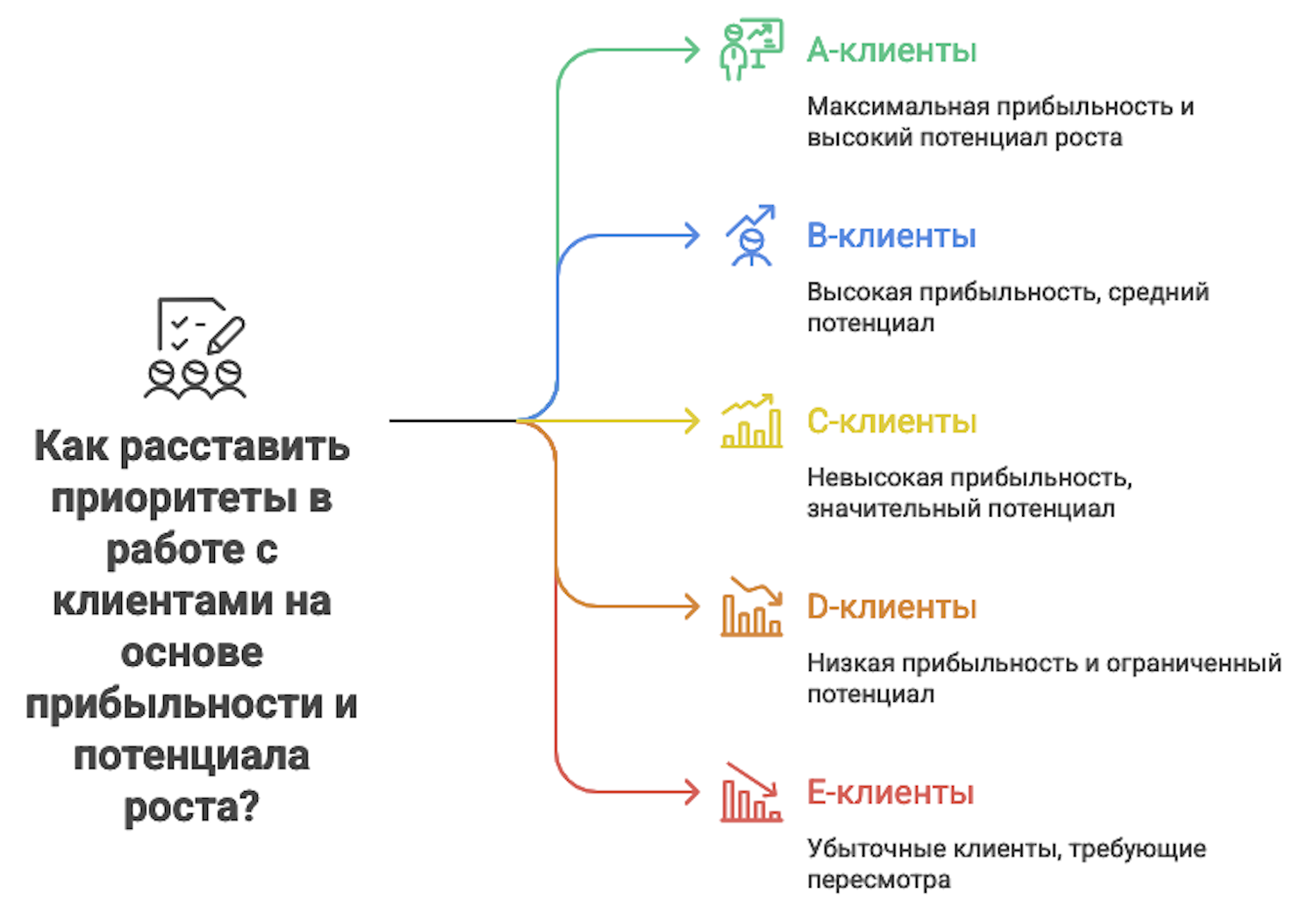 ABCDE-модель помогает расставить приоритеты в работе с клиентами: